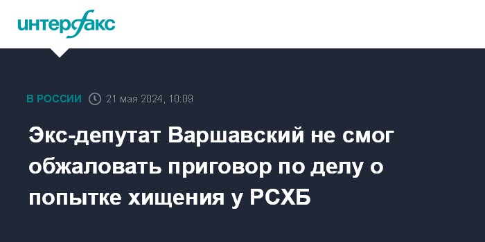 Экс-депутат Варшавский не смог обжаловать приговор по делу о попытке хищения у РСХБ