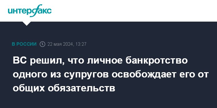 ВС решил, что личное банкротство одного из супругов освобождает его от общих обязательств