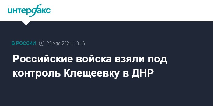Москва. 22 мая. INTERFAX.RU - В министерстве обороны РФ заявили, что подразделения "Южной" группировки войск взяли под контроль населенный пункт Клещеевка в Донецкой народной республике.