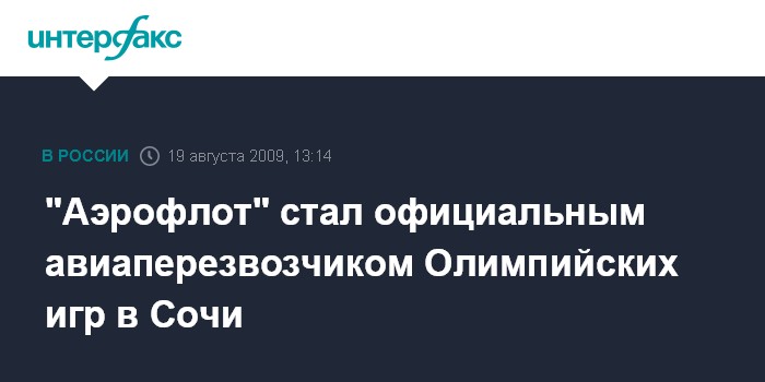 Москва. 19 августа. INTERFAX.RU - ОАО "Аэрофлот - российские авиалинии" стало официальным перевозчиком зимних Олимпийских и Параолимпийских игр 2014 года в Сочи. Соответствующее соглашение было подписано в рамках авиасалона "МАКС-2009", сообщил корреспондент "Интерфакса" с официальной церемонии подписания.