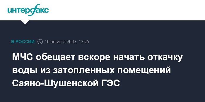 Москва. 19 августа. INTERFAX.RU - На Саяно-Шушенской ГЭС в течение ближайшего часа будет завершена установка затворов, и в 20:00 по местному времени (16:00 мск) будет начата откачка воды из затопленных помещений, сообщили в среду "Интерфаксу" в МЧС России. Как передал корреспондент "Интерфакса", работы на ГЭС продолжаются, спасатели МЧС России и водолазы занимаются поиском погибших.