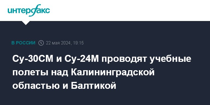 Москва. 22 мая. INTERFAX.RU - Авиация Балтийского флота России проводит учебно-тренировочные полеты над материковой частью Калининградской области и акваторией Балтийского моря, сообщила пресс-служба флота в среду.