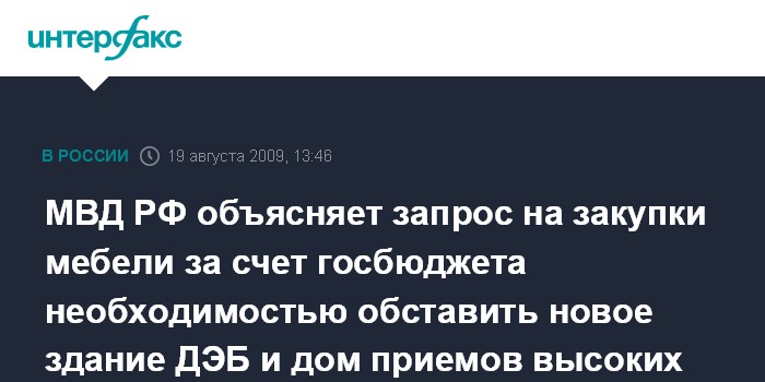 МВД РФ объясняет запрос на закупки мебели за счет госбюджета необходимостью обставить новое здание ДЭБ и дом приемов высоких иностранных гостей