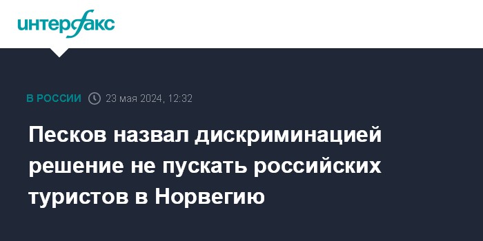 Москва. 23 мая. INTERFAX.RU - В Кремле назвали дискриминационным решение Норвегии запретить въезд российским туристам.
