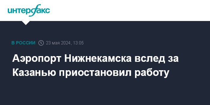 Москва. 23 мая. INTERFAX.RU - - Аэропорт Нижнекамска приостановил работу в четверг для обеспечения безопасности полетов, сообщила Росавиация.