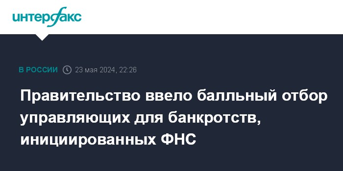 Правительство ввело балльный отбор управляющих для банкротств, инициированных ФНС