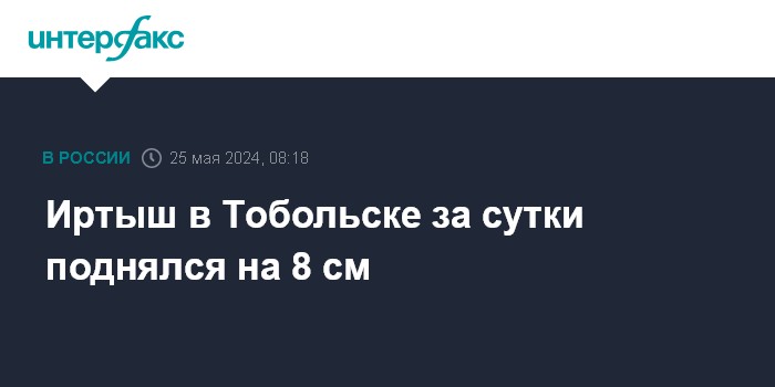Так, согласно замерам, уровень воды в Иртыше в Тобольске за сутки повысился на 8 см, до 739 см (критическая отметка составляет 853 см).