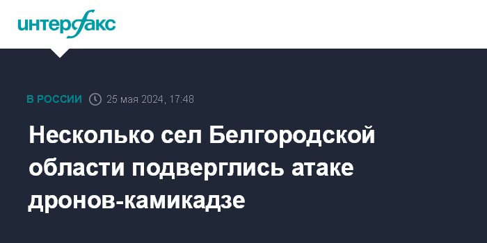 Москва. 25 мая. INTERFAX.RU - Несколько сел Грайворонского городского округа в Белгородской области были атакованы дронами-камикадзе ВСУ, сообщил в субботу глава региона Вячеслав Гладков.