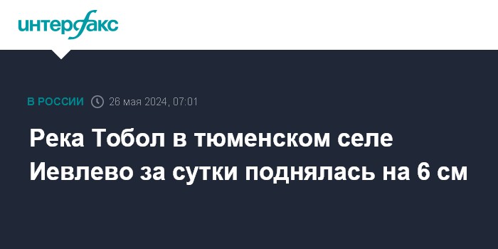 Москва. 26 мая. INTERFAX.RU - Уровень реки Тобол продолжает расти в одном из сел Ярковского района Тюменской области, сообщает информационный центр регионального правительства в воскресенье.