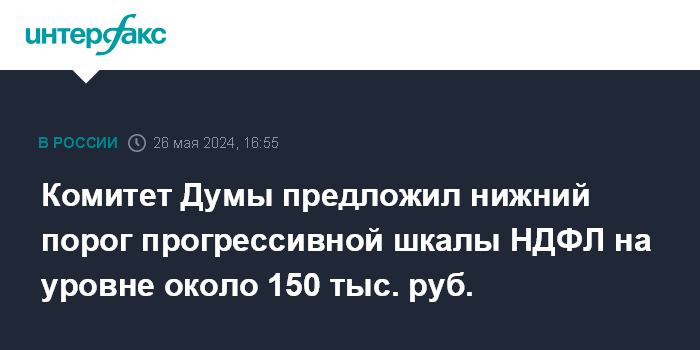 Комитет Думы предложил нижний порог прогрессивной шкалы НДФЛ на уровне около 150 тыс. руб.