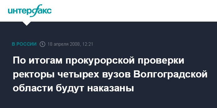Москва. 18 апреля. INTERFAX.RU - По представлению Генеральной прокуратуры России ректоры четырех вузов Волгоградской области привлечены к дисциплинарной ответственности.