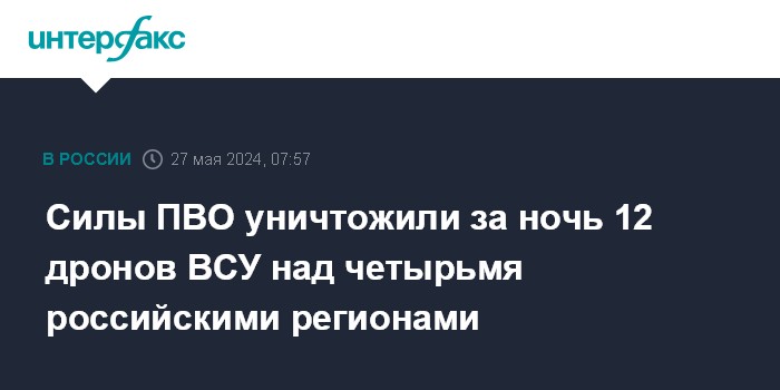 Силы ПВО уничтожили за ночь 12 дронов ВСУ над четырьмя российскими регионами