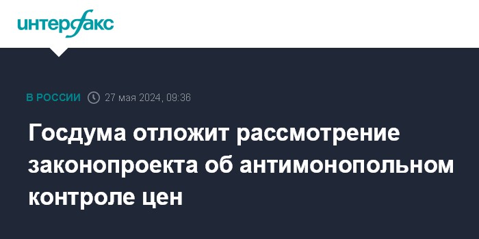 Госдума отложит рассмотрение законопроекта об антимонопольном контроле цен