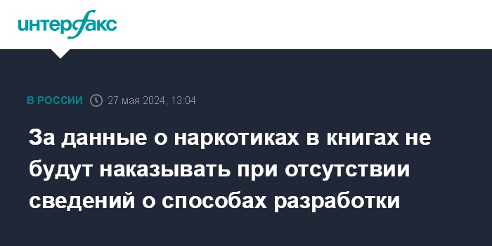 За данные о наркотиках в книгах не будут наказывать при отсутствии сведений о способах разработки