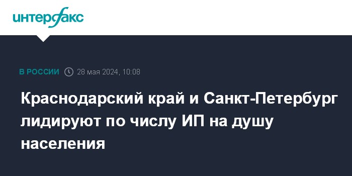 Краснодарский край и Санкт-Петербург лидируют по числу ИП на душу населения