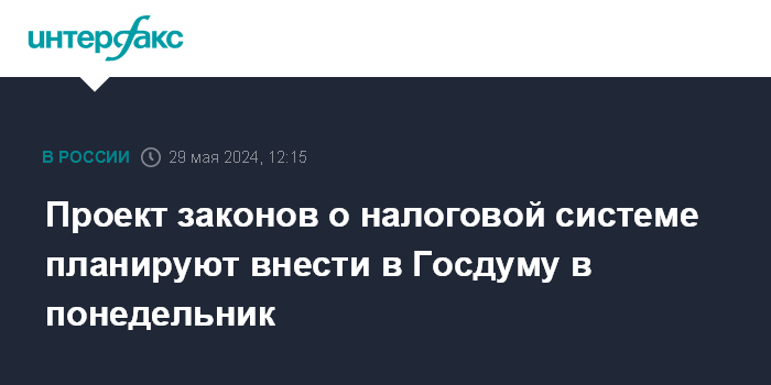 Проект законов о налоговой системе планируют внести в Госдуму в понедельник