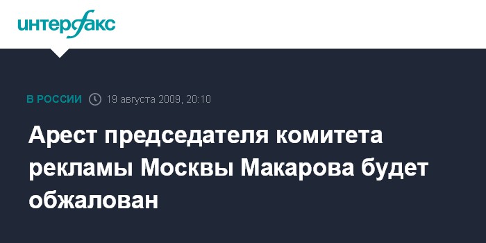 Арест председателя комитета рекламы Москвы Макарова будет обжалован