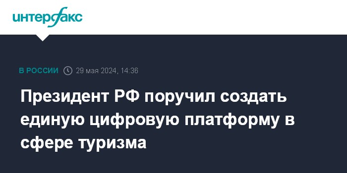 Москва. 29 мая. INTERFAX.RU - Президент России Владимир Путин поручил правительству РФ создать единую цифровую платформу в сфере туризма.