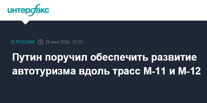 "Разработать и утвердить план мероприятий ("дорожную карту") по развитию автомобильного туризма в районах прохождения автомобильных дорог М-11 "Нева" и М-12 "Восток", обратив особое внимание на организацию съездов с данных дорог и развитие прилегающих автомобильных дорог, необходимых для такого туризма, создание мест притяжения туристов и формирование пешеходных маршрутов, в том числе на особо охраняемых природных территориях, а также на приоритетное развитие коллективных средств размещения", - говорится в поручении.