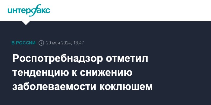 Москва. 29 мая. INTERFAX.RU - В России отмечается тенденция к снижению заболеваемости коклюшем, регистрируются преимущественно единичные случаи заболевания без дальнейшего распространения инфекции, сообщили в Роспотребнадзоре.