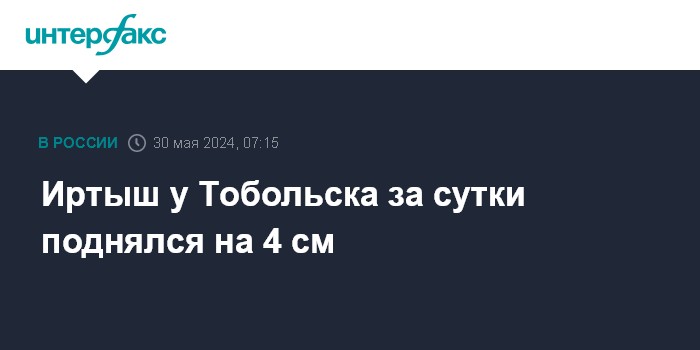 Москва. 30 мая. INTERFAX.RU - Уровень воды растет по всему течению реки Иртыш в Тюменской области, сообщает информационный центр регионального правительства в четверг.