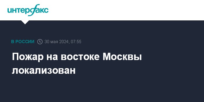 "На востоке Москвы локализован пожар в производственно-складском здании", - говорится в сообщении.
