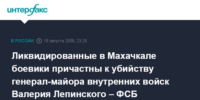 Ликвидированные в Махачкале боевики причастны к убийству генерал-майора внутренних войск Валерия Лепинского – ФСБ