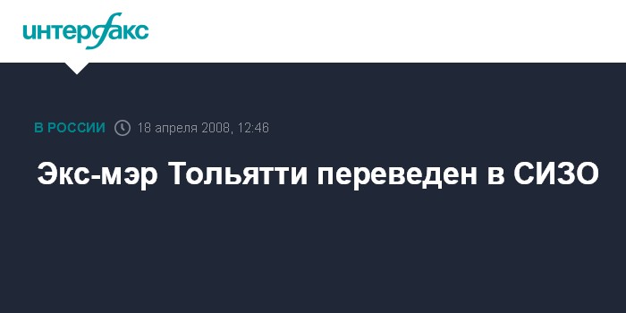 Экс-мэр Тольятти переведен в СИЗО