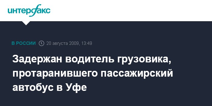 Москва. 20 августа. INTERFAX.RU - Возбуждено уголовное дело против водителя грузовика, протаранившего в Уфе пассажирский автобус, стоявший на остановке, в результате чего один человек погиб, 24 пострадали. Как сообщил агентству "Интерфакс-Поволжье" в четверг представитель ГИБДД Башкирии, 20 августа следственным управлением УВД Уфы против водителя грузовика, 1986 г.р., имеющего водительский стаж с 2008 года, возбуждено уголовное дело по ч.2 ст. 264 УК РФ (нарушение правил дорожного движения и эксплуатации транспортных средств, повлекшие по неосторожности смерть человека). По его информации, виновник аварии, водитель грузовика, задержан на 48 часов. В пятницу в Ленинском райсуде Уфы будет решаться вопрос об избрании задержанному шоферу меры пресечения.