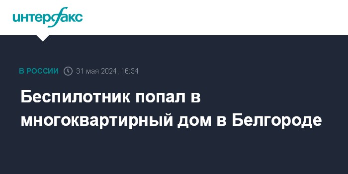 Москва. 31 мая. INTERFAX.RU - Белгород подвергся атаке ВСУ с помощью БПЛА самолетного типа, сообщил губернатор Белгородской области Вячеслав Гладков в пятницу.