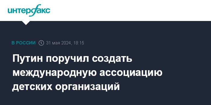 Москва. 31 мая. INTERFAX.RU - Президент РФ Владимир Путин поручил правительству и своей администрации вместе с "Движением первых" обеспечить создание международной ассоциации детских организаций.