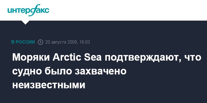 Москва. 20 августа. INTERFAX.RU - Доставленные в Москву члены экипажа российского сухогруза Arctic Sea подтвердили на допросах факт захвата неизвестными их судна во время его следования по шведским территориальным водам Балтийского моря. Как сообщил "Интерфаксу" официальный представитель СКП РФ Владимир Маркин, в ходе допросов члены экипажа судна пояснили, что к борту "Arctic Sea" в шведских территориальных водах подошла скоростная надувная лодка, в которой находились восемь человек в черной одежде с надписью на спине "POLICIA". Они поднялись на борт судна и, угрожая оружием, потребовали от экипажа беспрекословного выполнения всех их распоряжений.