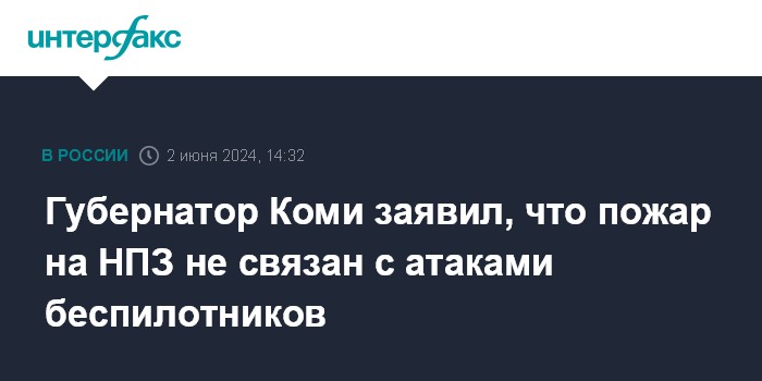 Губернатор Коми заявил, что пожар на НПЗ не связан с атаками беспилотников