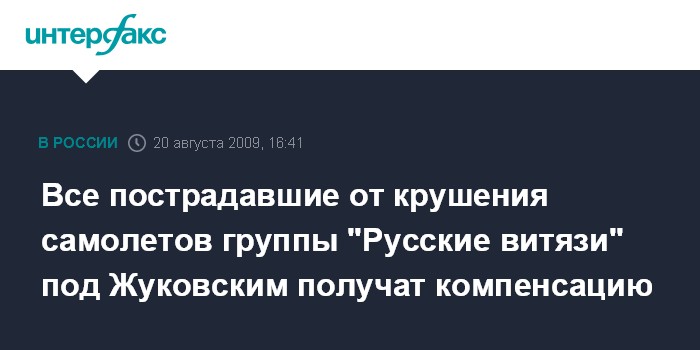 Все пострадавшие от крушения самолетов группы "Русские витязи" под Жуковским получат компенсацию