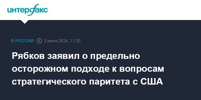 Москва. 3 июня. INTERFAX.RU - Москва максимально осторожно подходит к любым вопросам, связанным с обеспечением стратегического паритета с Вашингтоном, заявил журналистам замглавы МИД Сергей Рябков.