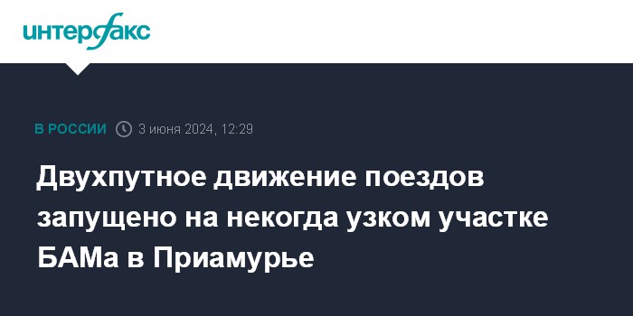 Москва. 3 июня. INTERFAX.RU - Перегон Муртыгит - Мохортов Байкало-Амурской магистрали (БАМ) в Амурской области начал принимать поезда без ограничения движения после запуска в работу второго пути.