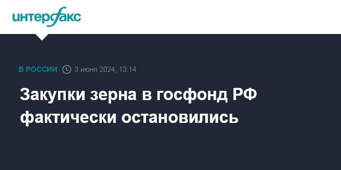 Москва. 3 июня. INTERFAX.RU - Закупочные интервенции на рынке зерна фактически остановились. Как сообщается в пресс-релизе Национальной товарной биржи (НТБ, входит в группу Московская биржа), в понедельник, как и 30-31 мая, закупок не было, торговые дни завершились с нулевым результатом.