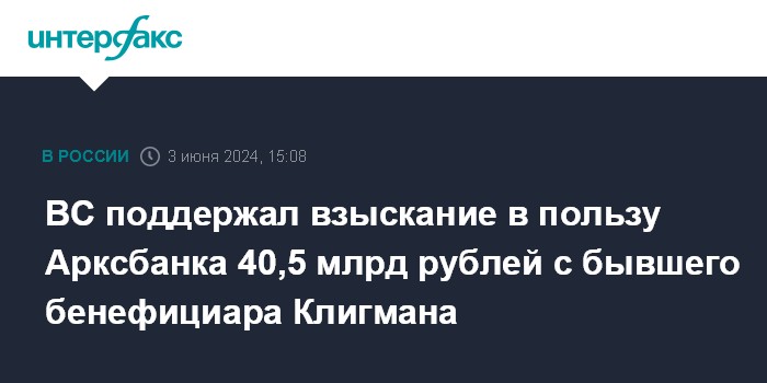 ВС поддержал взыскание в пользу Арксбанка 40,5 млрд рублей с бывшего бенефициара Клигмана