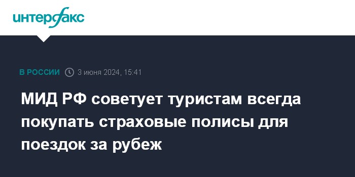 МИД РФ советует туристам всегда покупать страховые полисы для поездок за рубеж