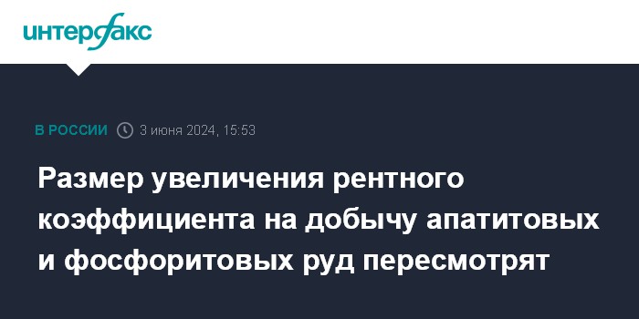 Размер увеличения рентного коэффициента на добычу апатитовых и фосфоритовых руд пересмотрят