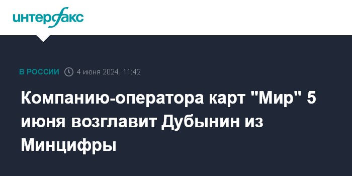 Компанию-оператора карт "Мир" 5 июня возглавит Дубынин из Минцифры
