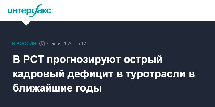 Москва. 4 июня. INTERFAX.RU - Туристическая отрасль РФ в ближайшее время может столкнуться с острым дефицитом квалифицированных специалистов, особенно будет не хватать линейного персонала, считают в Российском союзе туриндустрии (РСТ).
