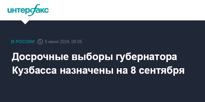 Досрочные выборы губернатора Кузбасса назначены на 8 сентября