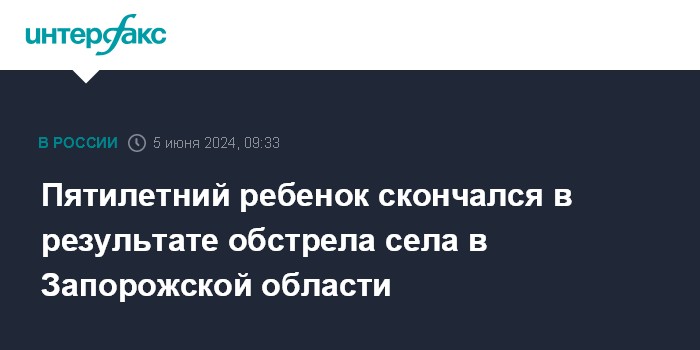 Пятилетний ребенок скончался в результате обстрела села в Запорожской области