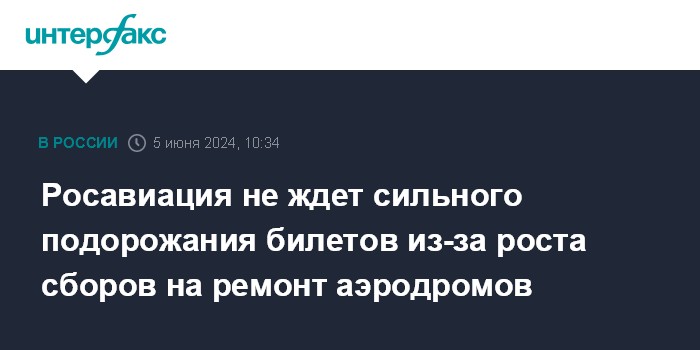 Росавиация не ждет сильного подорожания билетов из-за роста сборов на ремонт аэродромов