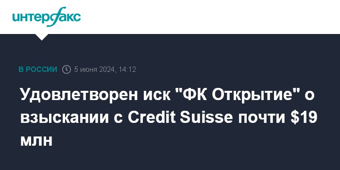 Удовлетворен иск "ФК Открытие" о взыскании с Credit Suisse почти $19 млн