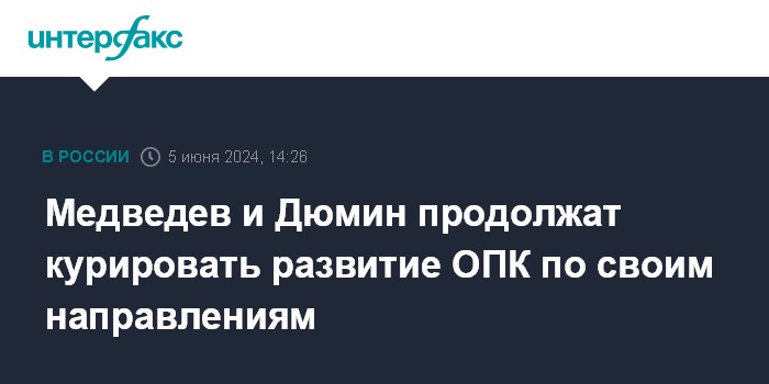 Медведев и Дюмин продолжат курировать развитие ОПК по своим направлениям