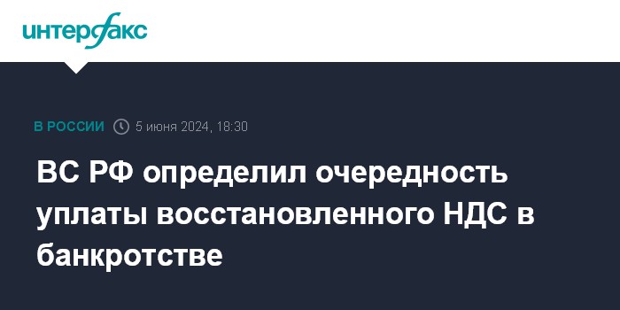 ВС РФ определил очередность уплаты восстановленного НДС в банкротстве