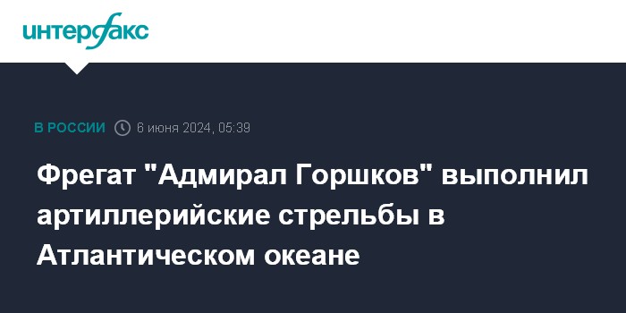Москва. 6 июня. INTERFAX.RU - Экипаж фрегата "Адмирал Горшков" провел в Атлантическом океане учение по отражению воздушного нападения с применением артиллерийского вооружения, сообщила пресс-служба Северного флота.