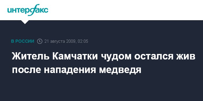 Петропавловск-Камчатский. 21 августа. ИНТЕРФАКС-ДАЛЬНИЙ ВОСТОК - Медведь напал на 23-хлетнего жителя Соболевского района Камчатского края, сообщили в пятницу агентству "Интерфакс-Дальний Восток" в пресс-службе УВД по Камчатскому краю.